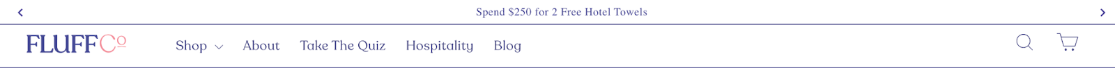 - Ana sayfadaki kahraman afişi, müşterilere Fluff Co ürünlerinin kalitesine dair sosyal kanıt ve güven veren bir sertifika bölümü içerir .