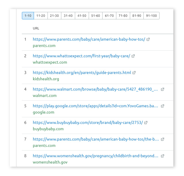 "Bebek bakımı"ndan bu yana, aylık arama hacmi 2,9.000'in üzerinde arama ile çok yüksek. O halde, düşük, rekabet gücü yüksek ancak yaklaşık olarak aynı TBM'ye sahip anahtar kelimeler elde edelim.
