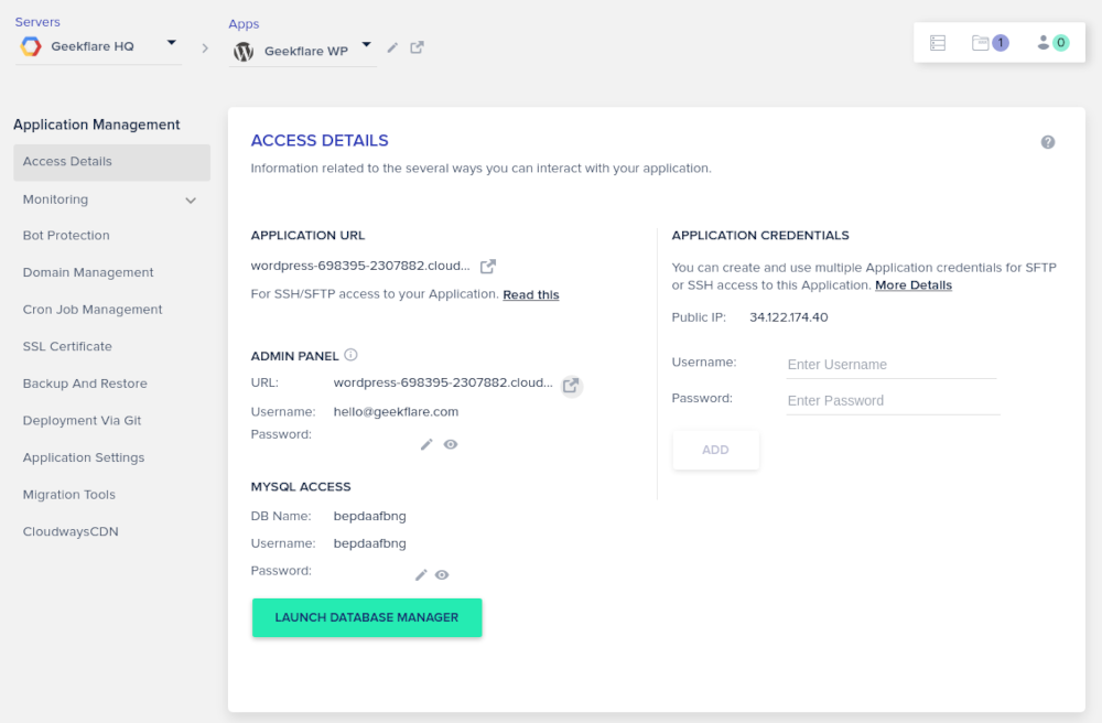 Cloudways, aynı zamanda size gelişmiş kontroller de sağlayan, kullanımı kolay bir kullanıcı arayüzü sunar.