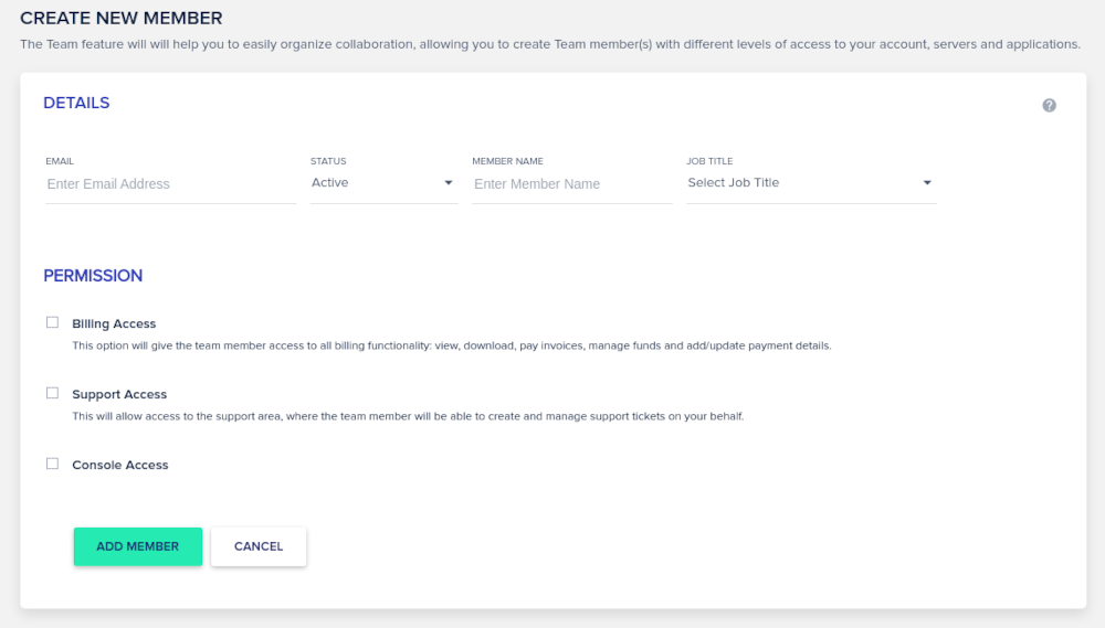 Birden fazla ekip üyesi olan bir işletmeniz varsa, bunları kolayca ekleyebilir ve onlara sunucu, faturalandırma vb. işlemleri yapmaları için gerekli izinleri verebilirsiniz.