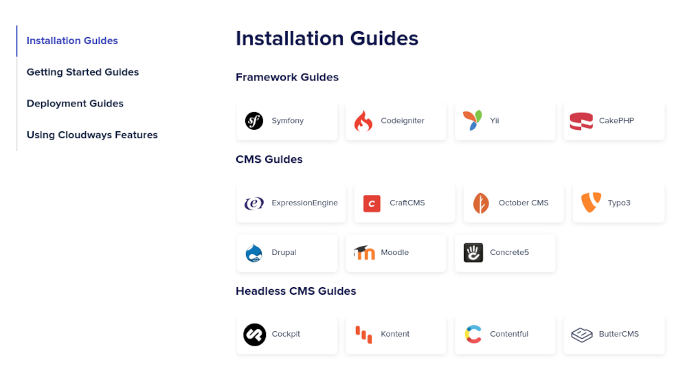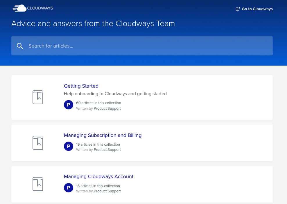 Çoğunlukla, onların destek personelinin yardımını almak zorunda değilsiniz. Cloudways, hizmetleri ve özellikleri hakkında kapsamlı belgeler sunar (bazı ekstralarla birlikte).