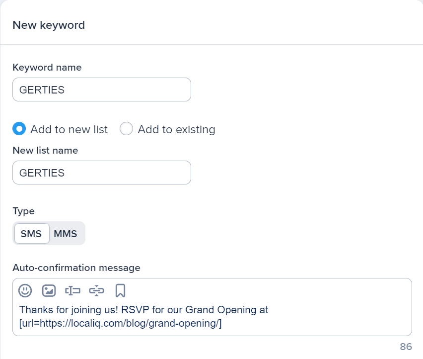 SMS ayrıca yaratıcı olmanız için size çok fazla alan sağlar. Yeni restoranınızın bir resmini veya kişilerin katılmak için kaydolabilecekleri bir LCV bağlantısını ekleyin.