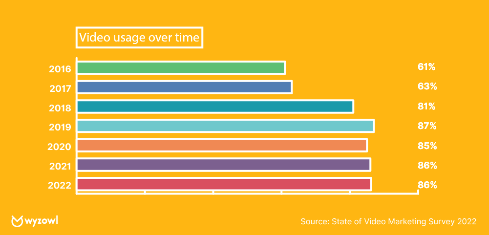 因此,组织逐渐转向视频内容。 Wyzowl 最近的一项研究表明,86% 的企业使用视频作为营销工具。 这个数字与前一年持平,表明视频将继续存在。