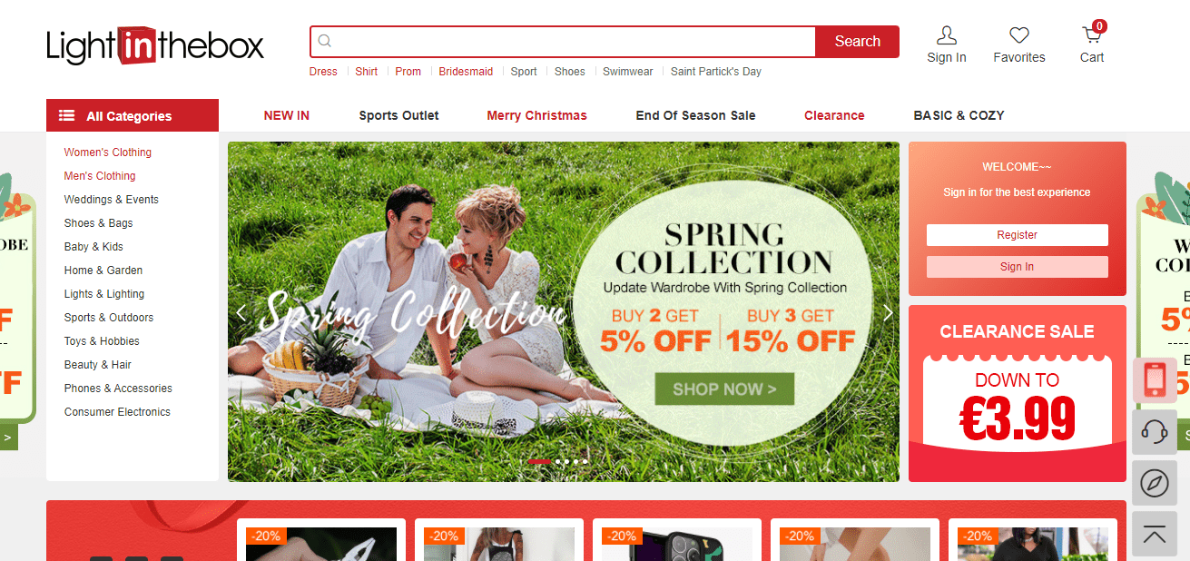 Lightinthebox 成立于 2007 年,是一家总部位于中国的电子商务网点,也为零售商和小型企业提供直销服务。 网站上的产品类别种类繁多。