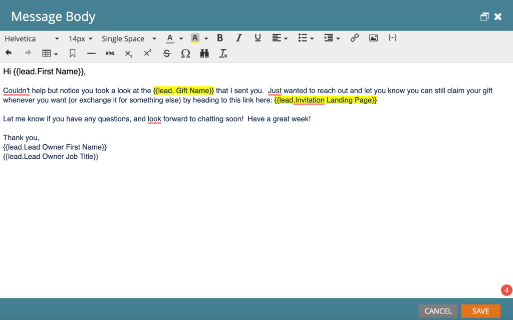 甚至更好? 利用 Marketo 中的 Alyce 礼品数据,使提醒更加个性化。 例如: