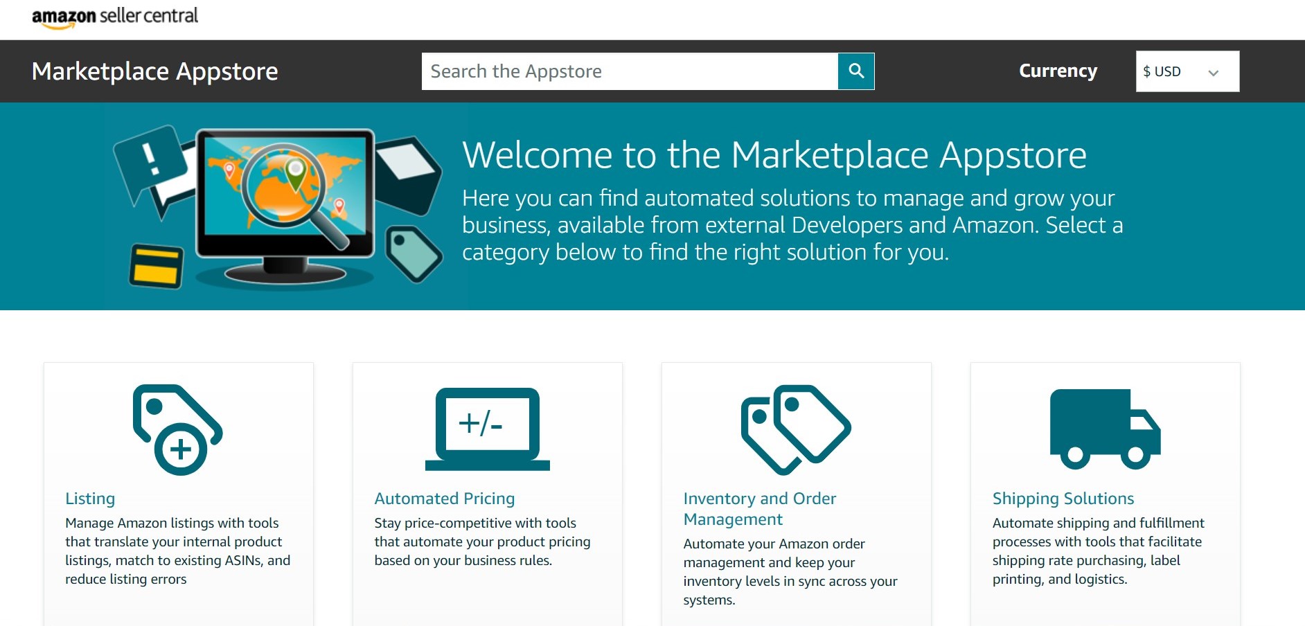 亚马逊的Marketplace Appstore为卖家提供来自外部开发者的应用程序和亚马逊的应用程序。 应用程序类别包括列表、自动定价、库存和订单管理、运输解决方案、广告、促销、产品研究和侦察、买卖双方消息传递 和更多。 开发人员在提交应用程序以供亚马逊批准时只能选择三个类别。
