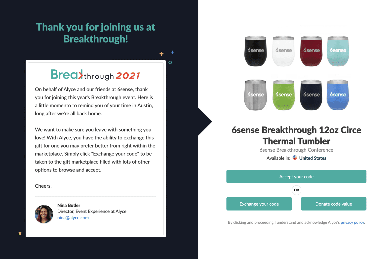 - 酒精:请注意,并非销售和营销团队中的每个人都是酒精鉴赏家。 在带上这份公司礼物之前,请确信收件人喜欢酒精饮料。 让接受者选择接受、交换或捐赠其价值并不是一个坏主意。 (PS Alyce 个人礼品平台处理所有物流,因此您可以合法地向客户赠送葡萄酒、啤酒和烈酒。)