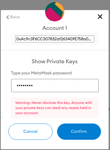输入您的密码并单击确认以显示您的私钥。 我已经审查了我的私钥只是为了强调它的保密性。