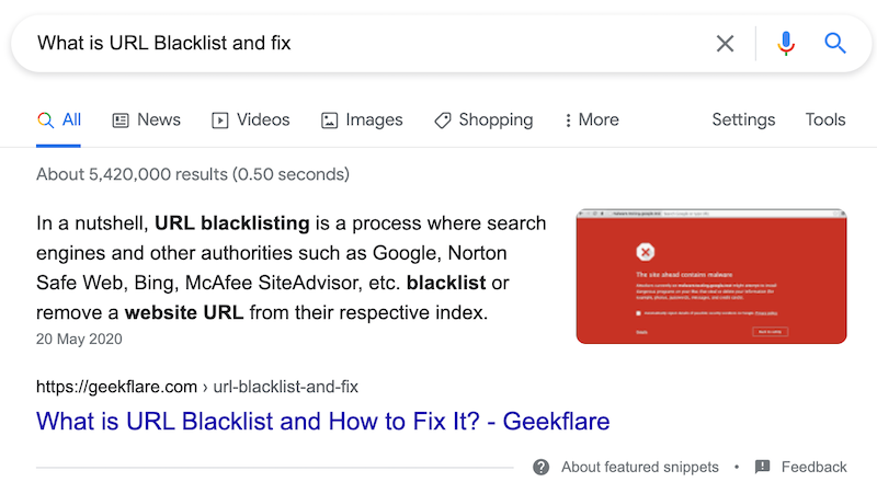您可以看到上面的标题介绍了 URL 黑名单是什么以及如何修复它。