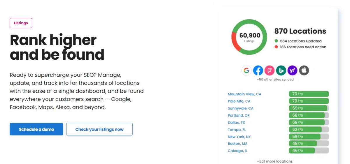 您无需支付订阅费或花钱租用本地列表; 相反,使用他们的 Yext 替换服务对主要站点进行全面清理和审核。 他们还提供额外的本地、城市或行业特定列表,以进一步发展您的业务。