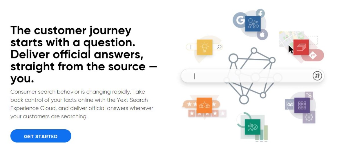 在 Yext 的帮助下,获得高搜索引擎排名并在不同搜索引擎和网站之间无缝管理您的在线声誉。 使用 Yext Search Experience Cloud 控制您的在线业务,同时在客户搜索和提问时提供官方答案。