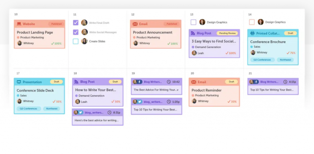 Coschedule 是一款值得称道的社交媒体管理工具,具有组织功能,非常适合有许多贡献者的小型企业。