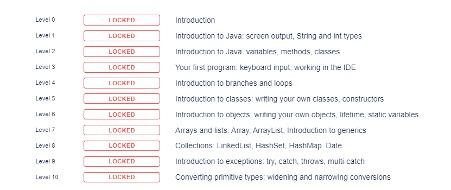 这就是为什么有经验的程序员建议将学习工具列表限制为 2-3 个平台。 为此,Codegym 是一个可行的选择,因为它提供了结构化的学习课程,并将理论解释与实践问题相结合(这与学生通常在考试或入门级工作面试中看到的非常相似)。
