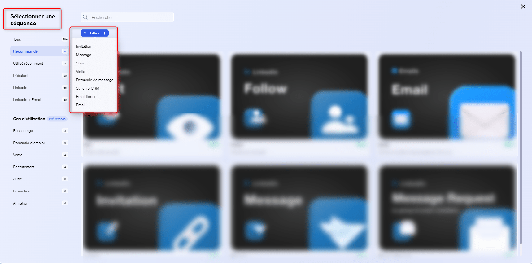 潜在客户可以响应的所有序列,简单的“消息”或“带有登录注释的邀请”序列,或复杂的序列,消息和电子邮件相结合。