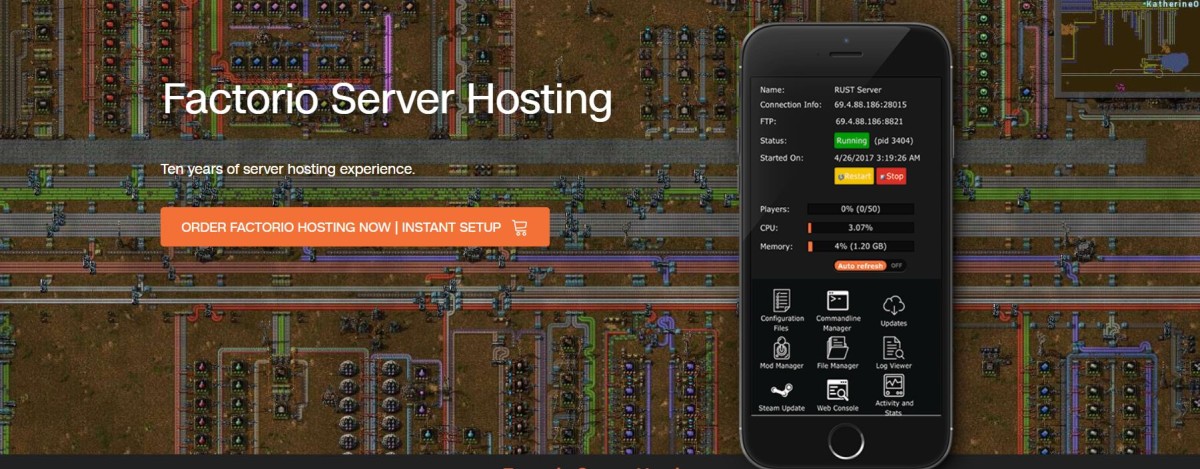 GTXGaming 终于推出了 Factorio 服务器托管,它带有易于使用的配置编辑器,可让您快速轻松地添加管理员。 GTXGaming 会在每次重启时压缩服务器并将备份文件上传到异地备份 NAS。