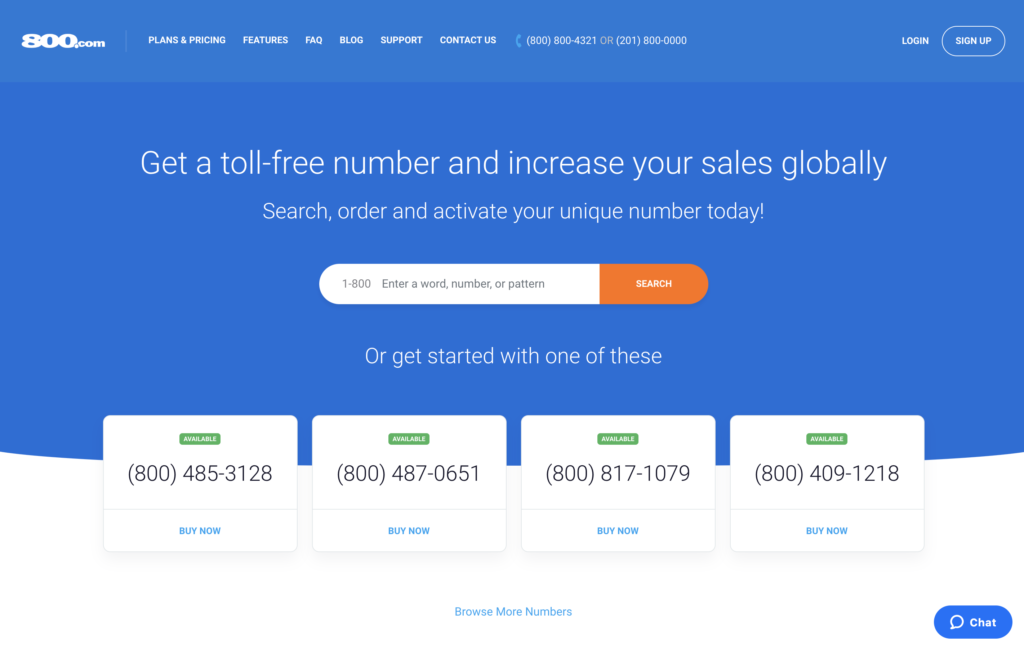 800.com 是一种用户友好、快速的免费电话号码服务。 800.com 优先考虑业务需求,使其成为各种规模公司的有吸引力的提供商。