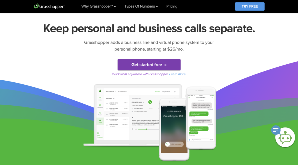 Grasshopper 不断更新其免费电话号码; 它提供了各种 800 多个号码,包括个性化号码选项。