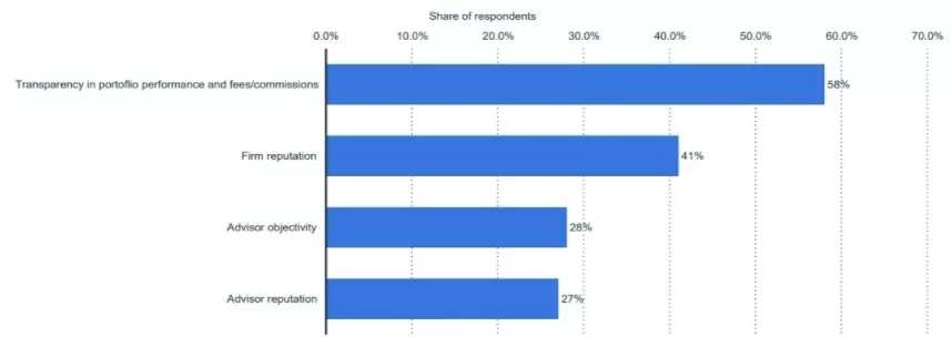 我们获取的数据强调信任和透明度是影响投资领域决策的特别重要因素。