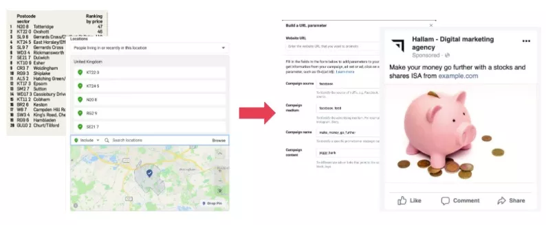 在此阶段,我们能够针对我们发现的可支配收入最高的英国地区进行定位,并围绕我们之前确定的最有可能对投资感兴趣的群体进行定义和分层年龄定位。