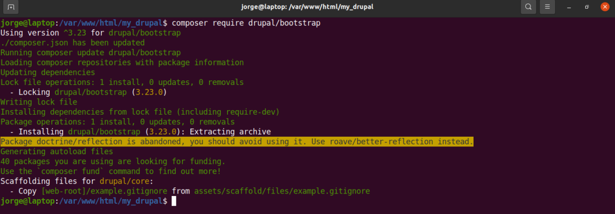cd /var/www/html/my_drupal composer require drupal/bootstrap