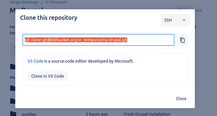 git remote add origin [email protected]:[MY_PROJECT]/my-drupal.git git push -u origin master您可以从 Bitbucket 的存储库页面复制并粘贴这两个命令。