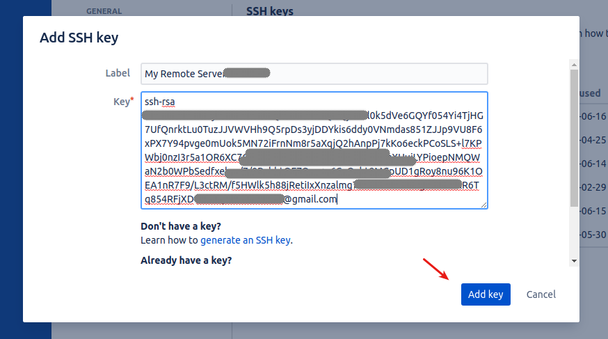 第 10 步:将生产服务器密钥添加到 Bitbucket