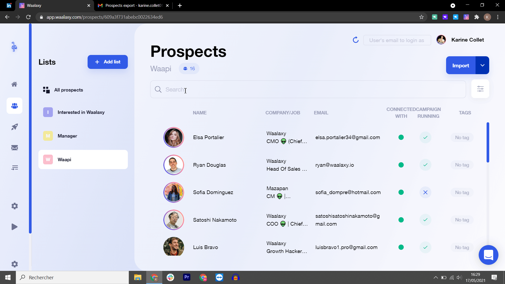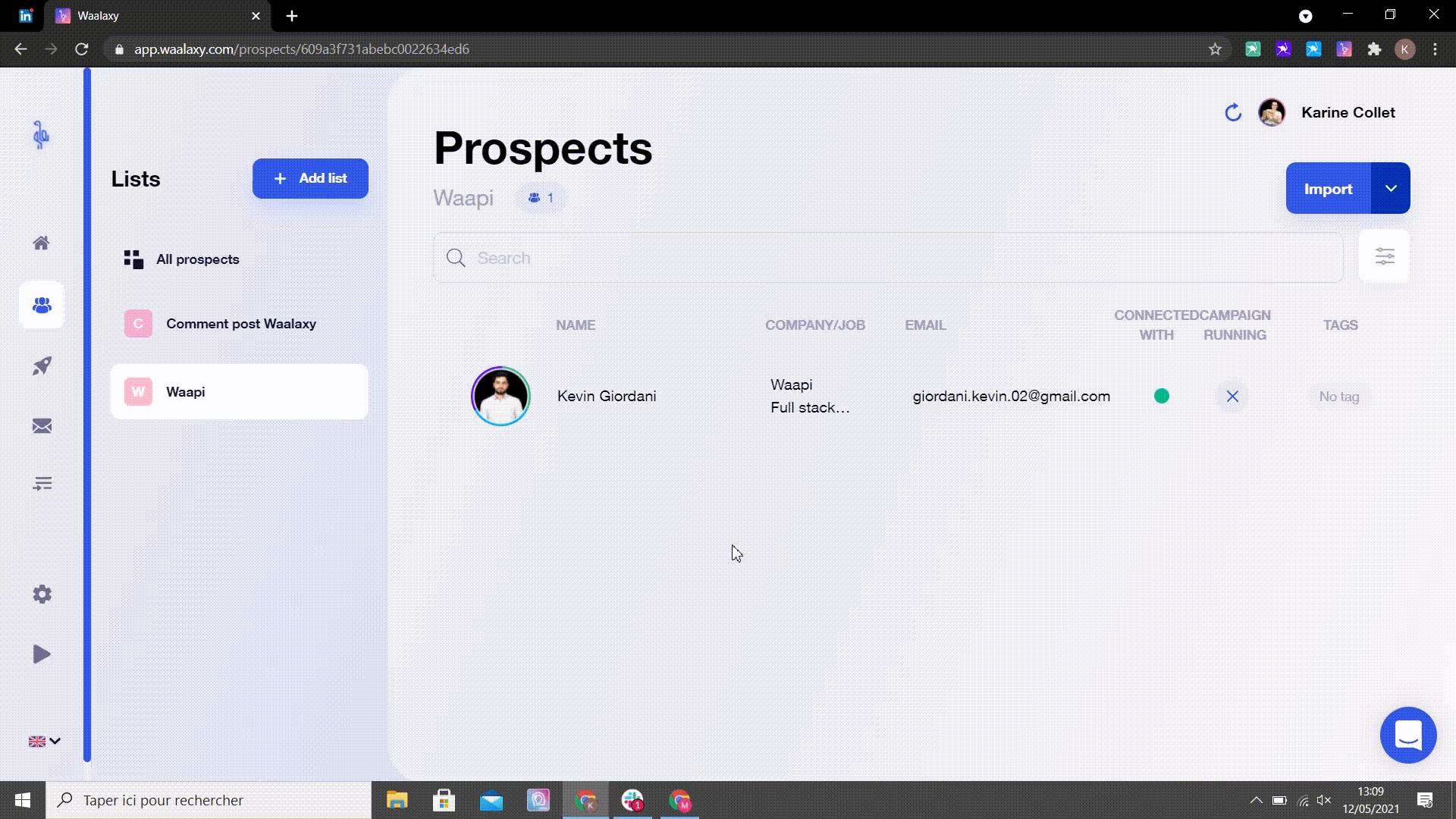将潜在客户导出到假账户后,您所要做的就是使用 Waalaxy 的 CSV 导出功能。