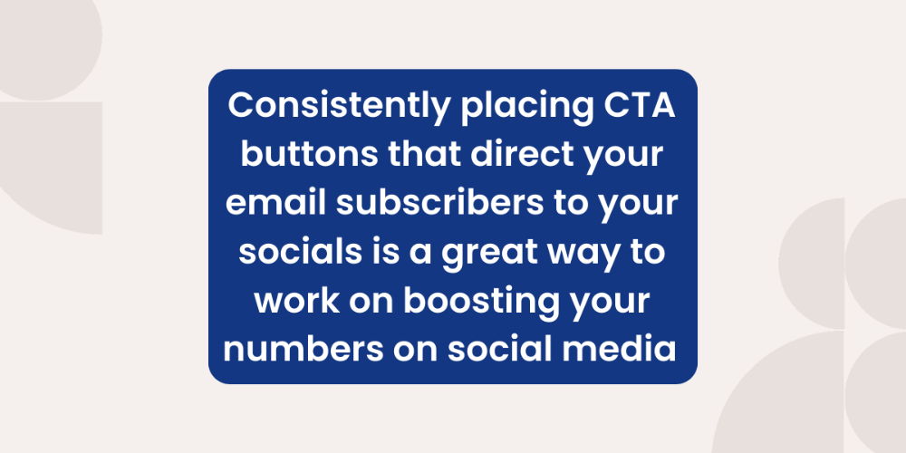 始终如一地放置 CTA 按钮,将您的电子邮件订阅者引导至您的社交网站,是提高您在社交媒体上的人数的好方法。 鼓励您的社交媒体关注者使用清晰明确的 CTA 订阅您的电子邮件也是如此。