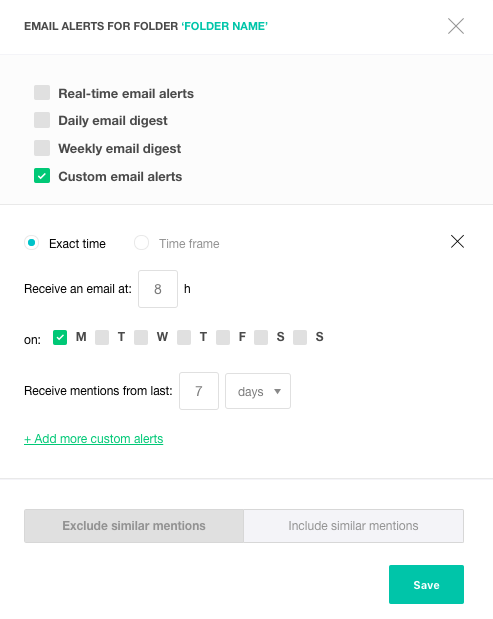 Mediatoolkit尤其提供警报和摘要。 更具体地说,它提供实时和自定义电子邮件警报,以及每日和每周电子邮件摘要。