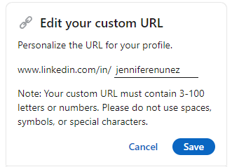 自定义 URL 有很多选择。 但是,对于您的 LinkedIn URL,您需要坚持这些想法或提出自己的想法; 我们只是建议保持专业。