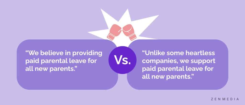 做到这一点的一种方法是专注于您品牌的立场,而不评论那些不同意的人。 例如: