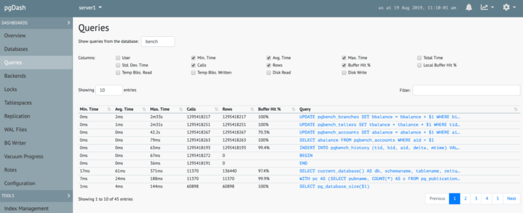 PgDash 是另一个专门为 Postgres 构建的监控工具,它提供索引管理、表空间管理和警报以及基本的日志监控功能。