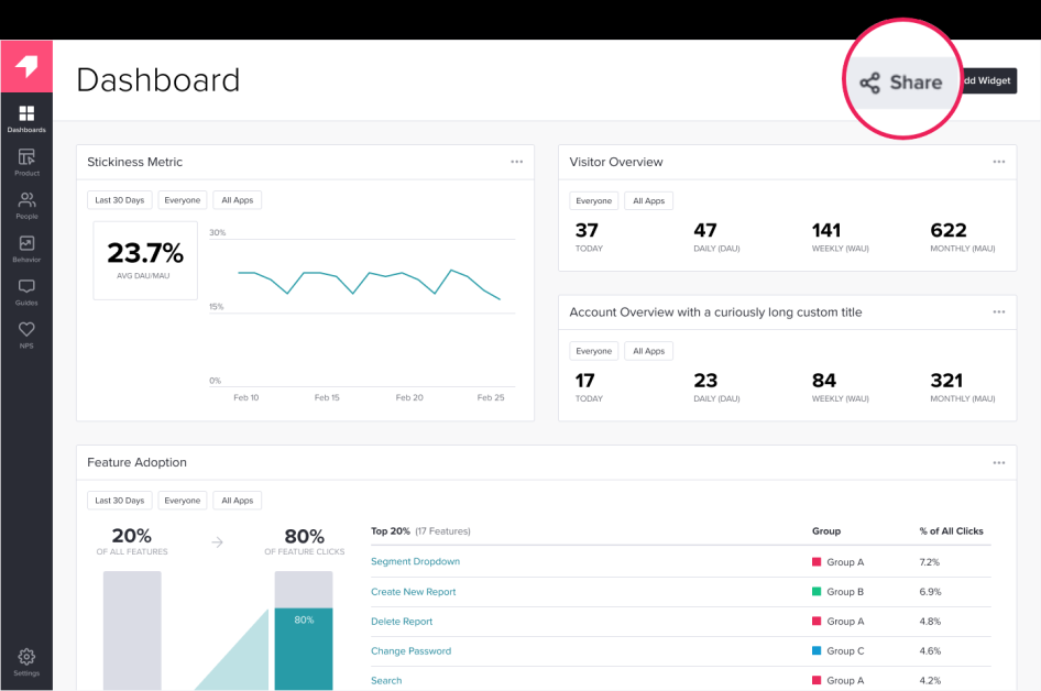 - 功能实施:虽然实施产品分析对于希望了解客户如何使用现有产品功能的公司很有用,但它也有助于测试新功能和评估用户体验。 当团队有使用多少新功能的目标时,他们可以使用产品分析提供的数据来实现该目标。