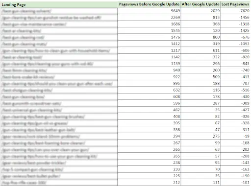 我们还根据 Google 更新前后的流量比较来更新文章。 我们分析并确定哪些文章应该更新,通常是通过评估竞争的缺点并加以利用。 如果我们看到可以击败竞争页面的区域,则会更新和优化文章。