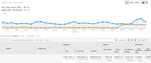 将 2022 年 9 月与 2022 年 10 月进行比较时,XYZ.com 增长了惊人的 240%!