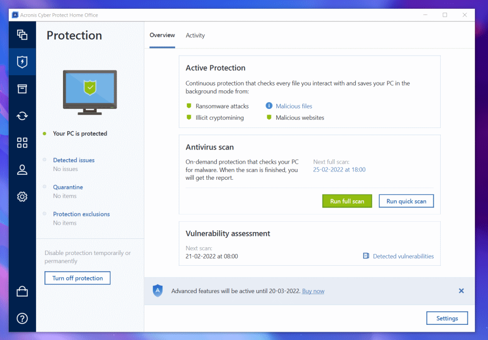 Acronis Cyber Protect 是一种高级软件工具,可增强计算机的安全性。