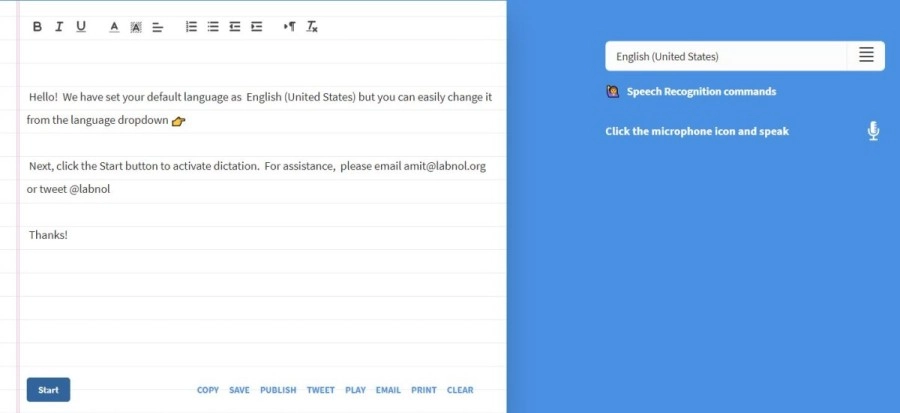 除此之外,听写利用谷歌语音识别将口语转录成书面文本。 事实上,它将文本存储在带有丰富格式选项的文本编辑器下。 您可以轻松地复制、推文、发布、将文本另存为纯文本、以语音形式播放、打印文本或通过电子邮件发送。