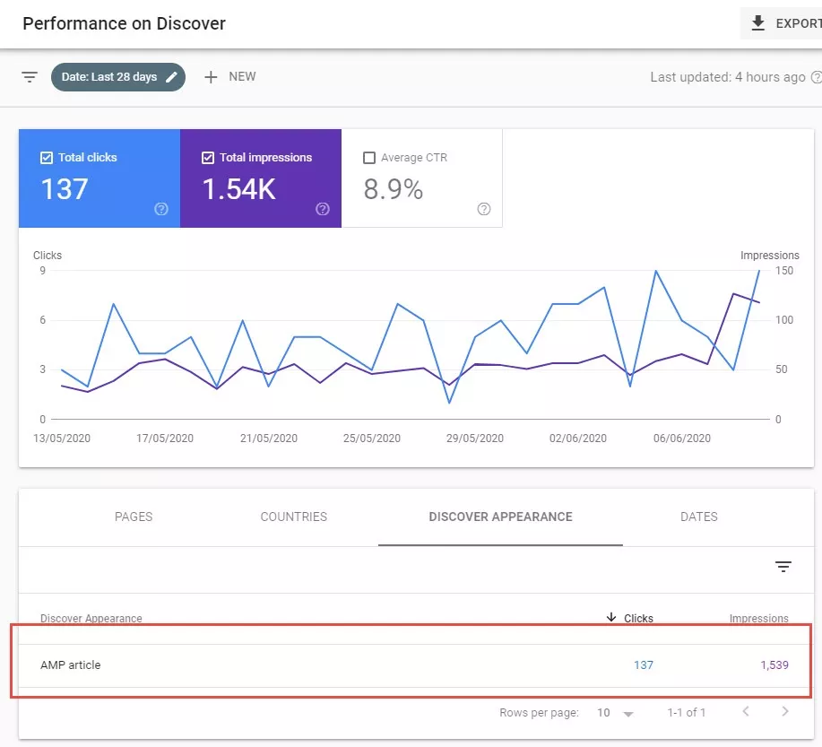 Google Search Console 将报告您的 AMP 页面出现在 Google Discover 结果中。