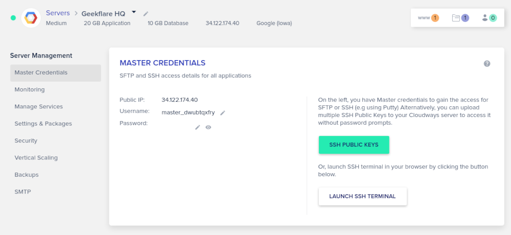 让我重点介绍一些可以帮助您在 Cloudways 上有效管理 WordPress 网站的关键功能: