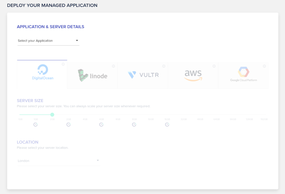 步骤#2 。 接下来,您需要选择要安装在服务器上的应用程序(此处为 WordPress)并选择首选的云托管服务提供商。