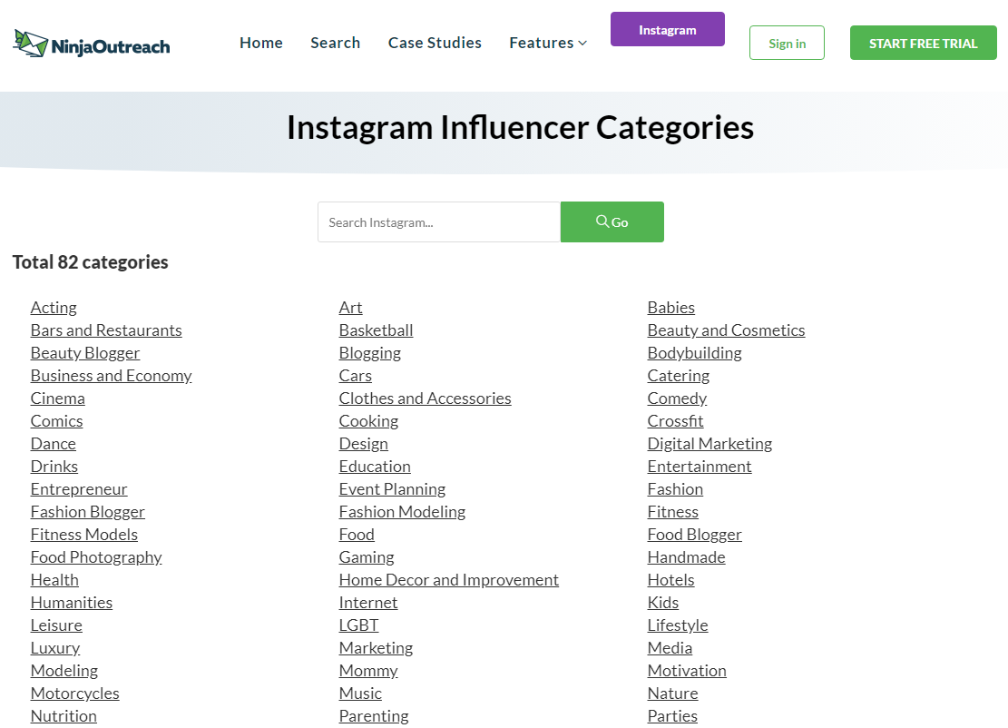 同樣,它是一個數據庫-一旦您選擇了利基市場和位置,該工具就會顯示相關影響者的列表,以及他們的社交媒體資料和電子郵件。 NinjaOutreach還會顯示每個影響者的參與度,以及影響者每個帖子收取的費用。