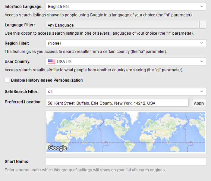 使用諸如Rank Tracker之類的工具,您可以使工作自動化-您可以在許多搜索引擎(台式機和移動設備)中通過指定街道地址的位置來衡量搜索的成功程度。