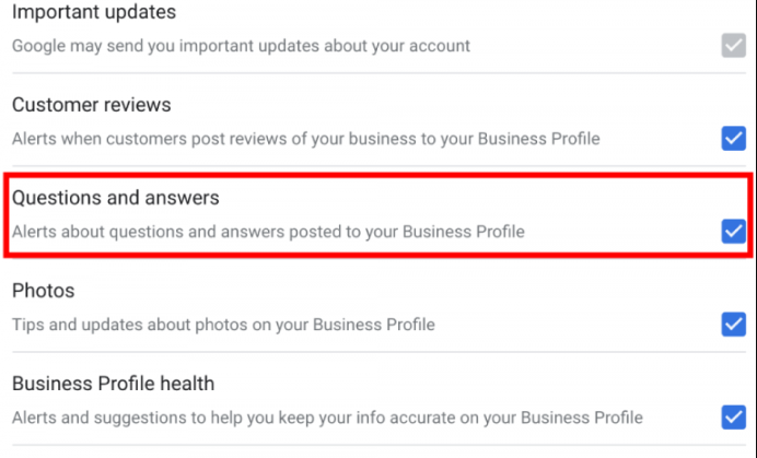 您還應該考慮在“ Google我的商家設置”中設置提醒,以通過電子郵件收到有關新問題的通知。