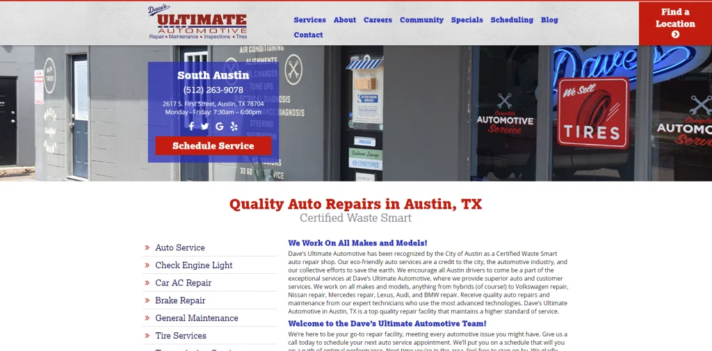 該汽車維修網站旨在讓您盡可能輕鬆地進行預約並找到離您最近的地點。 Dave's Ultimate Automotive 知道當您的汽車出現故障時壓力有多大,他們希望很容易找到它們。 他們還有一個信息豐富的博客,可以幫助訪問者了解他們汽車的不同方面。