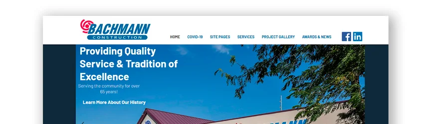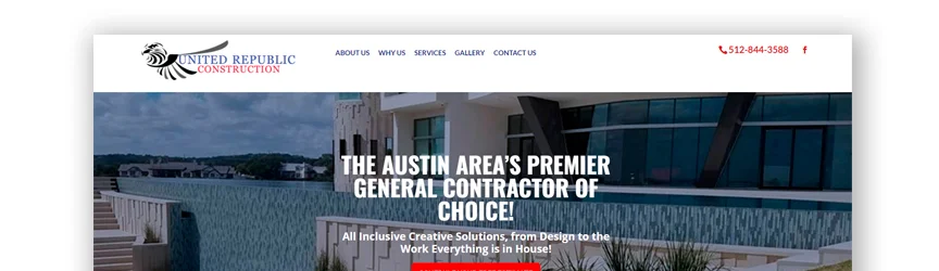 這個承包商網站的設計非常乾淨和有吸引力。 圖片之間有很多空白,還有突出的藍色。 一切都很簡單,主頁上的信息不多,但鏈接可以為您帶來更多信息。 這使頁面漂亮和乾淨,並幫助訪問者不會感到不知所措。