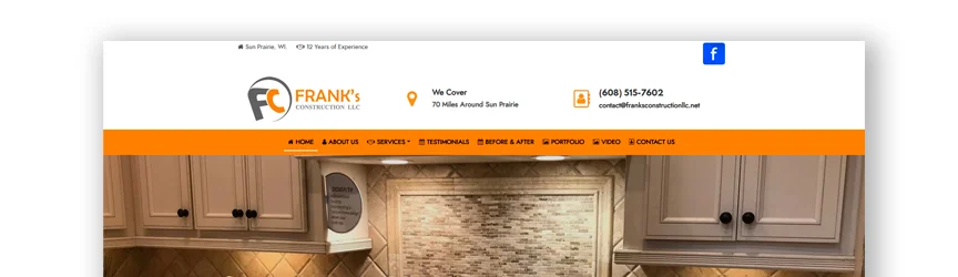 弗蘭克的承包商網站就是為了展示他們提供的家居裝修。 他們談論他們的使命和願景。 這是向訪問您網站的人展示他們為您的工作感到自豪並且您正在努力成為最佳人選的好方法。