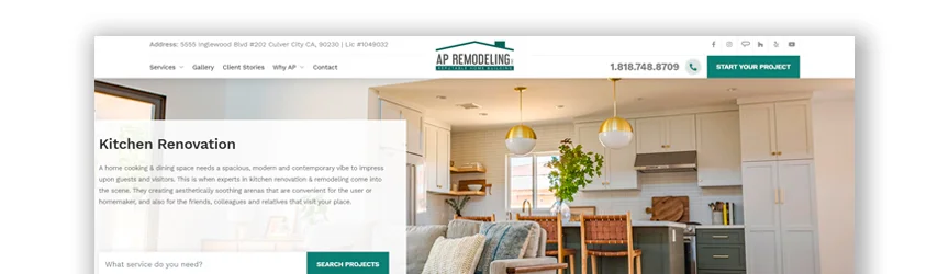 該網站使訪問者可以輕鬆瀏覽信息。 它乾淨,有吸引力,並顯示出現代感。 在網站的底部,他們提供有關改造不同方面的建議。 這是潛在客戶了解流程並了解一切費用的好方法。 然後客戶知道背景,一旦他們有了更好的理解就可以做出決定。