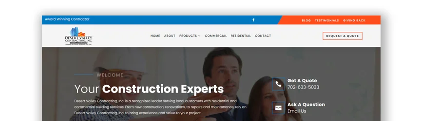 沙漠谷承包立即解釋了觀眾在選擇它們時可以期待什麼。 他們使用許多盒子來組織他們的所有信息。 此外,他們分享了許多過去的項目。 這讓潛在客戶感到滿意,因為他們知道如果他們與您聯繫,他們將收到他們想要的東西或圖片之類的東西。