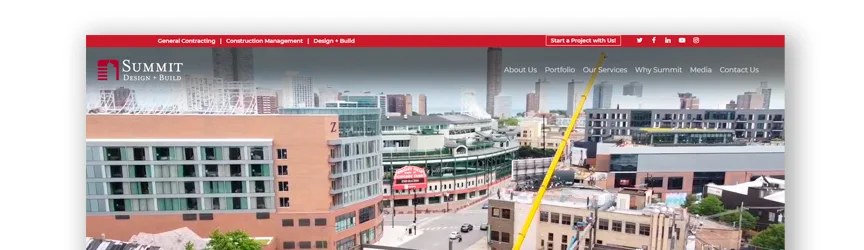 該承包商網站使用紅色配色方案,使其流行起來,也吸引了您的眼球。 Summit 以不同的步驟解釋了他們的流程,向您展示了事情是如何完成的。 讓潛在客戶更容易了解他們在選擇這家公司時的期望。 他們將他們的投資組合組織到不同的位置,以及構建的類型。 非常清楚如何通過頁面頂部和底部的聯繫信息與這家公司取得聯繫。