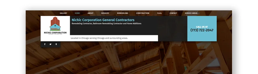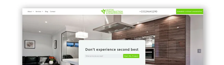 該承包商網站通過展示過去的項目並為每個項目提供成本計算器來吸引您的注意力。 這使訪問者無需先聯繫業務即可獲得確切項目的估算值。 這會盡快將信息提供給潛在客戶,然後可能會更快地啟動項目。 有一個實時聊天選項,還允許訪問者立即聯繫某人。